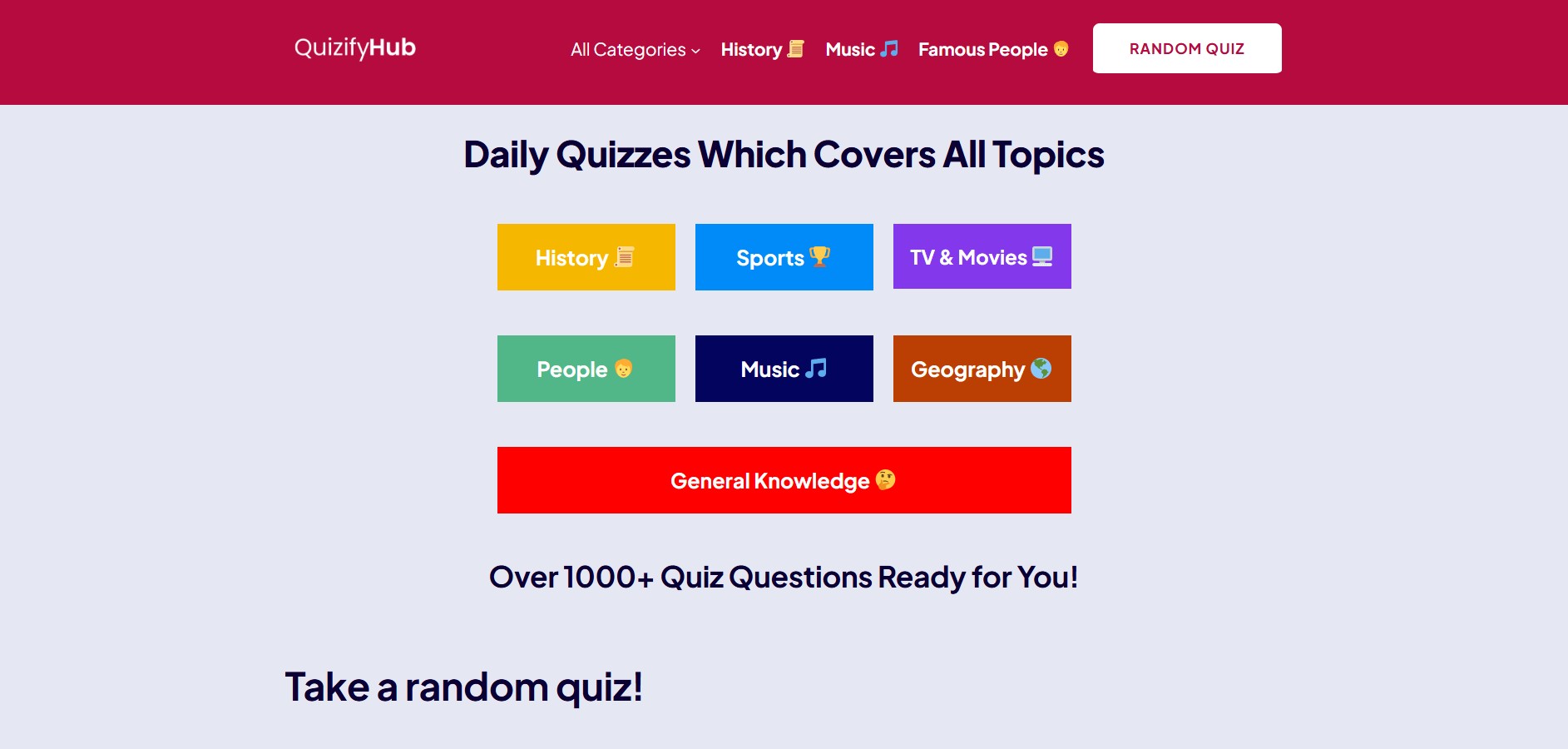 QuizifyHub ble et sted der brukere kunne teste kunnskapen sin i ulike temaer, mens jeg lærte hvordan man bygger opp en hel nettside fra idé til lansering — og hvordan man faktisk får trafikk uten betalt annonsering.